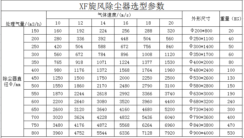 KXF型旋風除塵器選型參數(shù):