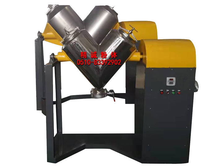 混料筒一般用不銹鋼制作,內外比拋光,結構設計上保證無積料死角,清洗方便徹底。筒體上部有兩個進料口,下部有一個出料口。桶體可用手轉動,以便于出料。另可帶強制攪拌裝置,有利于一些特殊物料的充分混合,或者可以附帶加濕裝置,改善噴霧造粒后的粉體的含水率。